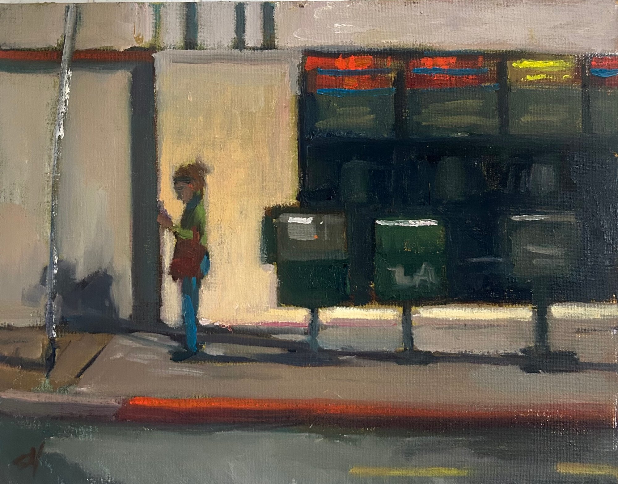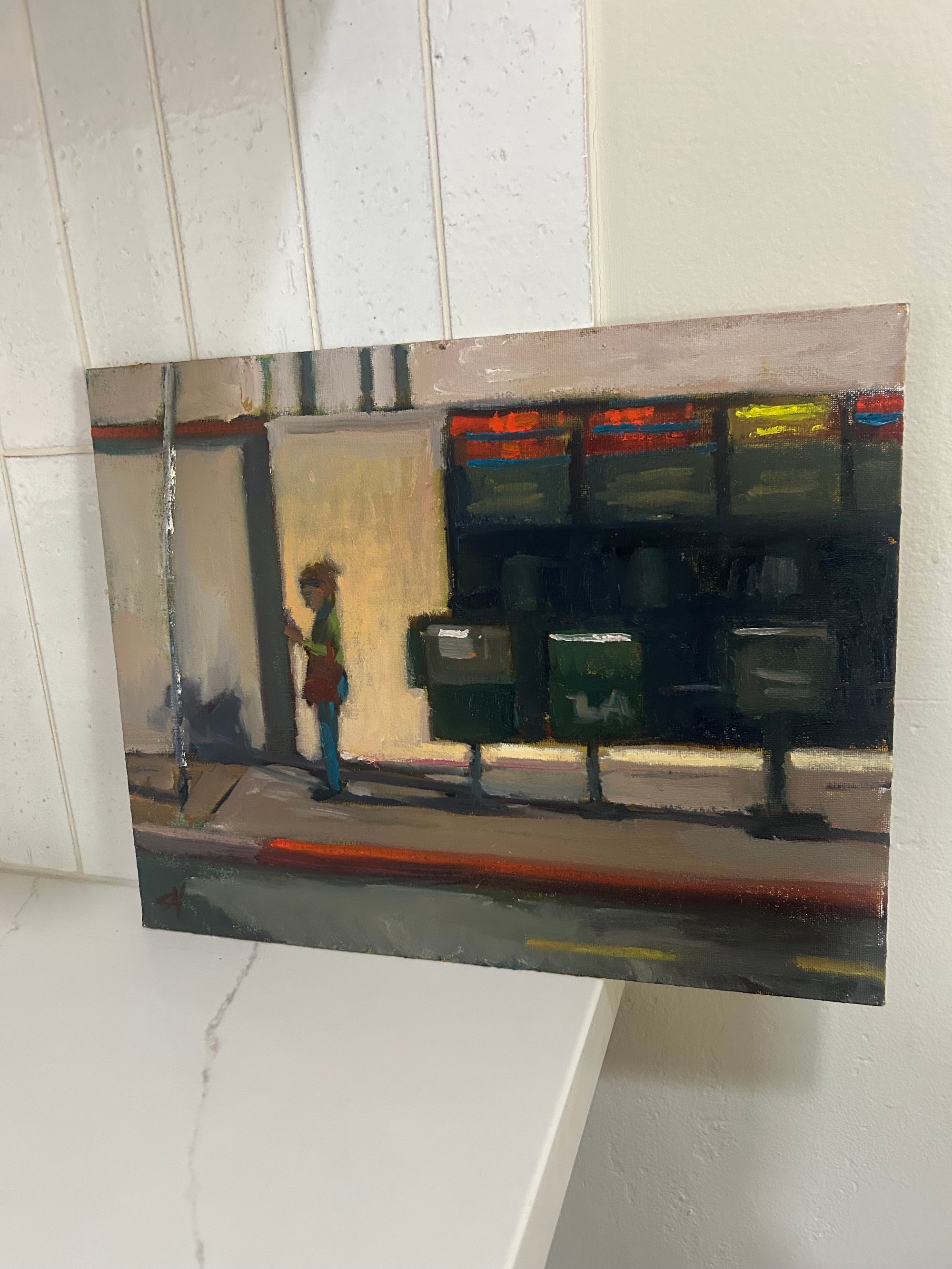 Original oil painting on canvas panel of a scene on Hollywood Blvd. 11”x14”