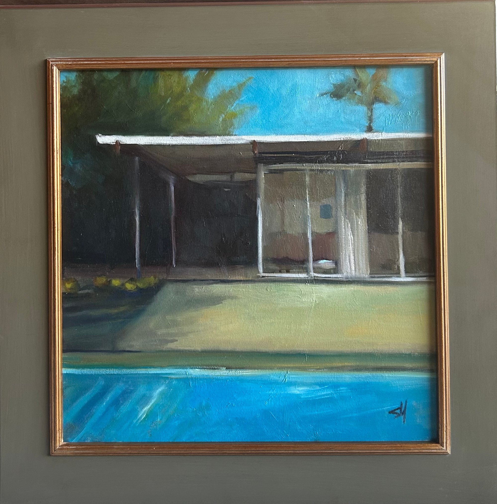 Original oil painting of the Neutra Levit House. 20”x20” oil on canvas. Frame included